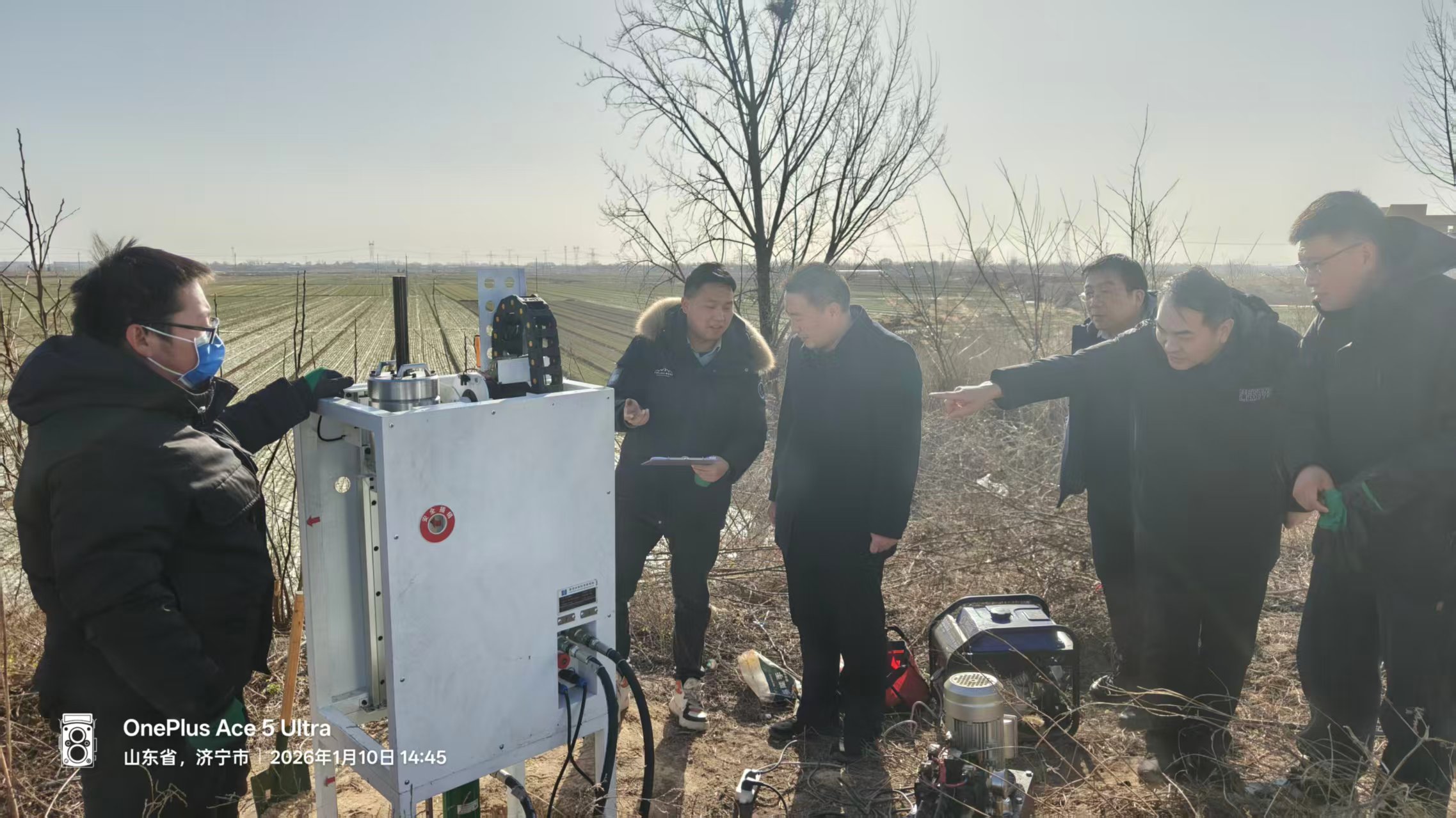 前期,依据秋季普查结果,选取了5个典型堤段作为本次探测的重点。探测期间,黄河水利科学研究院的专家团队利用动力触探设备定量分析堤身土体密实度与承载力。同时,运用RTK与无人机进行堤防断面三维扫描,全面获取地形地貌数据。并向研究小组成员现场示范讲解了如何通过定量数据判断土体力学性质、精准定位并量化空洞规模的技术流程。