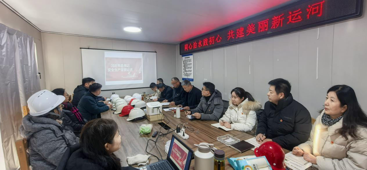 活动伊始,市水利事业发展中心党委委员、副主任、工程建管处长孙彦韬同志带领全体党员及骨干,专题学习了习近平总书记关于安全生产的重要论述和系列指示批示精神。学习紧密结合工程施工任务重、交叉作业多、风险防范易疲劳等特点,再次深刻阐释了“人民至上、生命至上”原则在工程建设攻坚期的极端重要性。会议强调,在工程推进的关键阶段,必须时刻绷紧安全弦,以“时时放心不下”的责任感,持续压实各方责任,深化现场风险动态管控,为工程顺利推进筑牢安全根基。
