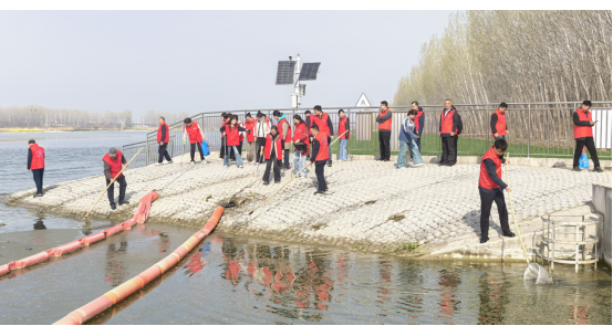 在现场,党员志愿者们身着红马甲,手持清洁工具,分组对取水口沿岸展开细致巡查。大家俯身捡拾散落在堤岸上的塑料瓶、包装袋等废弃物,并利用长柄渔网打捞水面漂浮的枯枝杂物。一弯碧波旁,跃动的“志愿红”成为河岸线上一道亮丽的风景,生动诠释了“护水先锋”的责任与担当。
